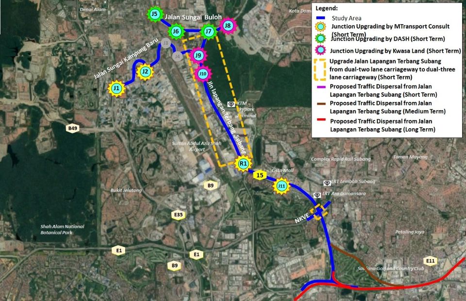 The objectives of this traffic study are to investigate the contributing factors that cause bad traffic congestion during peak hours at the site. It is also to identify the bottleneck locations and congested junctions with low levels of service along with Jalan Lapangan Terbang Subang Lama. On top of that, this study will also propose and appraise mitigation strategies to alleviate the congestion problem. There are 12 junctions, 3 interchanges, and 8 screen-lines that have been analysed and 10 junctions are proposed to be upgraded to cater to the future demand. The big issue for this study is the congested issue at Lebuhraya Persekutuan. This study has proposed upgrading works to provide total traffic solutions for the entire Klang Valley.